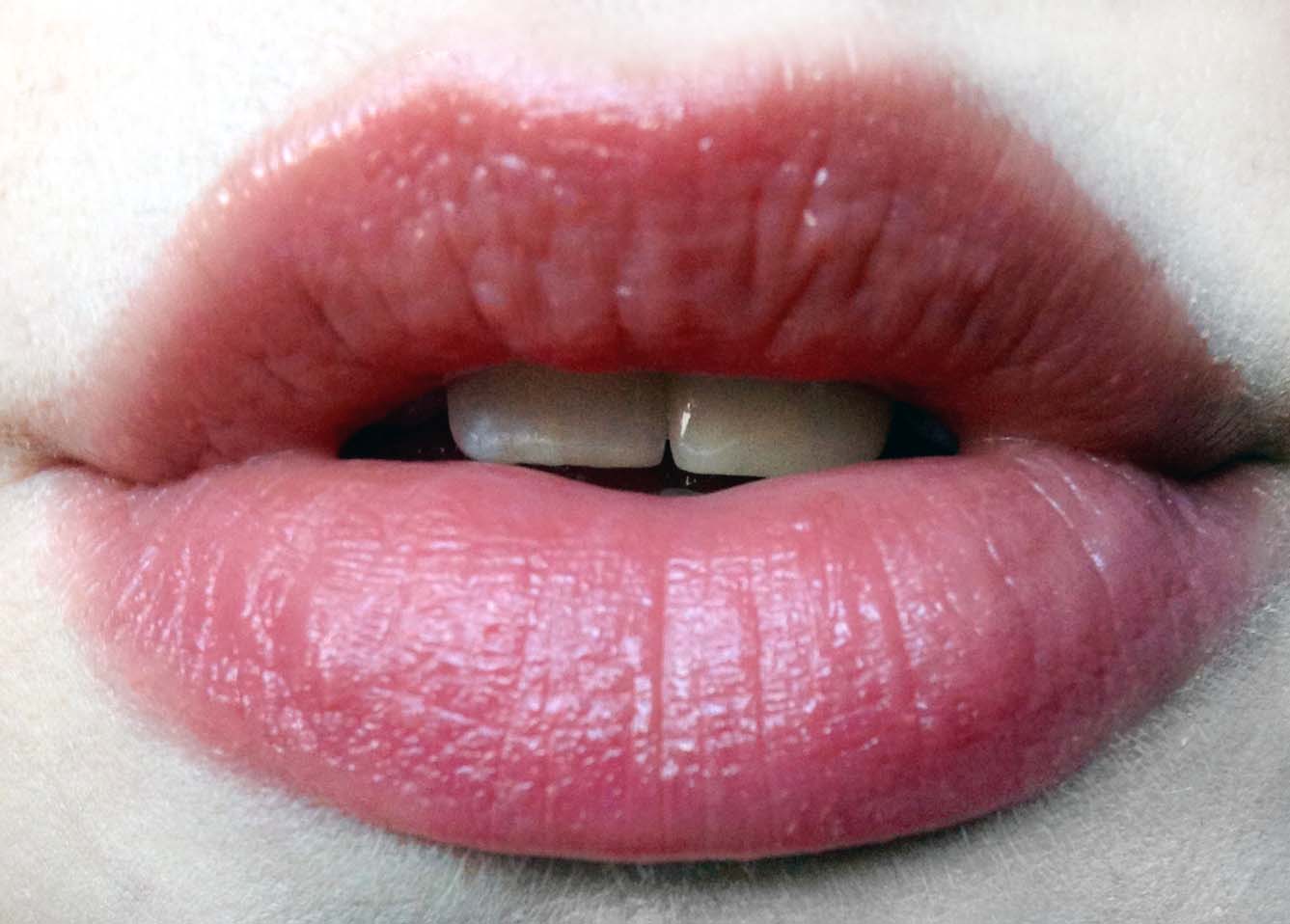 Here it is on the lips. Very natural and subtle, but enough color and shine to look put together. A real “My lips but better” color.
