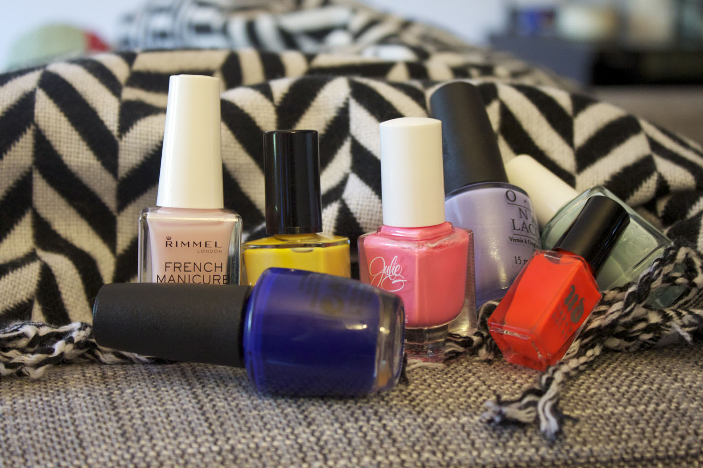 I painted the nails with two coats of the pale pink and let it dry. Then I used a short nail art brush to dash the colors on in vertical lines. Super simple, the only thing I would suggest is that you start with the lighter colors and build up to the darker ones.