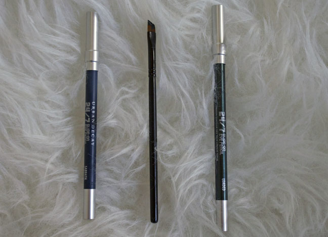 Ok now choose an eyeliner pencil. I prefer the Urban Decay 24/7 pencils because they are just my favorite in general, but any pencil that is very pigmented, goes on creamy and sets well would do. I’m going to choose my Urban Decay pencil in the color “loaded” for this . . .