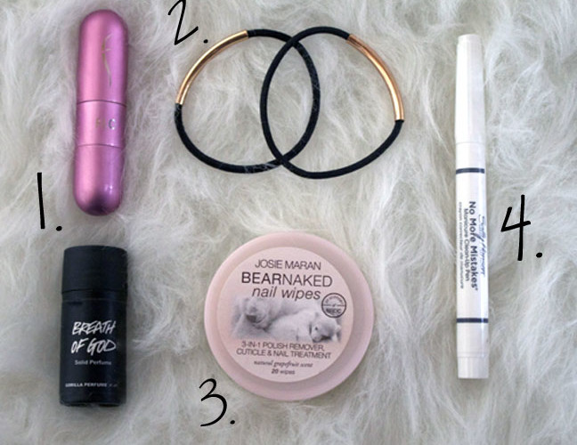 - Travel Friendly Fragrance - I have two options here. The one on the top left is a travel atomizer. The one I have is the Flo Atomizer, which I got in a Birchbox a long time ago. I have never tried any other type, but I assume they work similarly and I have heard a lot of good reviews about the Travelo ones as well. Basically you fill it with perfume out of one of your regular size bottles, so you don’t need to cart around delicate glass in your bag. It fills easily with a little pump and sprays evenly. You can also bring it on a plane if you are only using a carry-on, which is convenient. The biggest reason that I use this though, is because I have not once but TWICE broken a bottle of perfume in my suitcase. Out a bunch of money, and smelling like a stripper does not make for a good trip. The second type of travel friendly fragrance is a solid one. Personally I really enjoy the Lush Gorilla Solid Perfumes. They are really inexpensive and a little goes a LONG way. This weekend I’m bringing both, so I can switch from day to night.